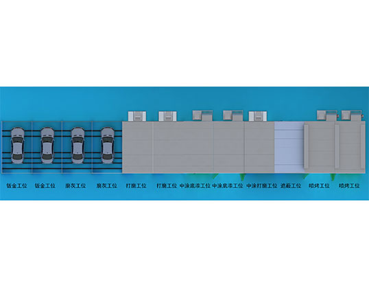 整條鈑噴流水線配52臺(tái)移動(dòng)小車和6條*44.9米/條=269.4米軌道;
